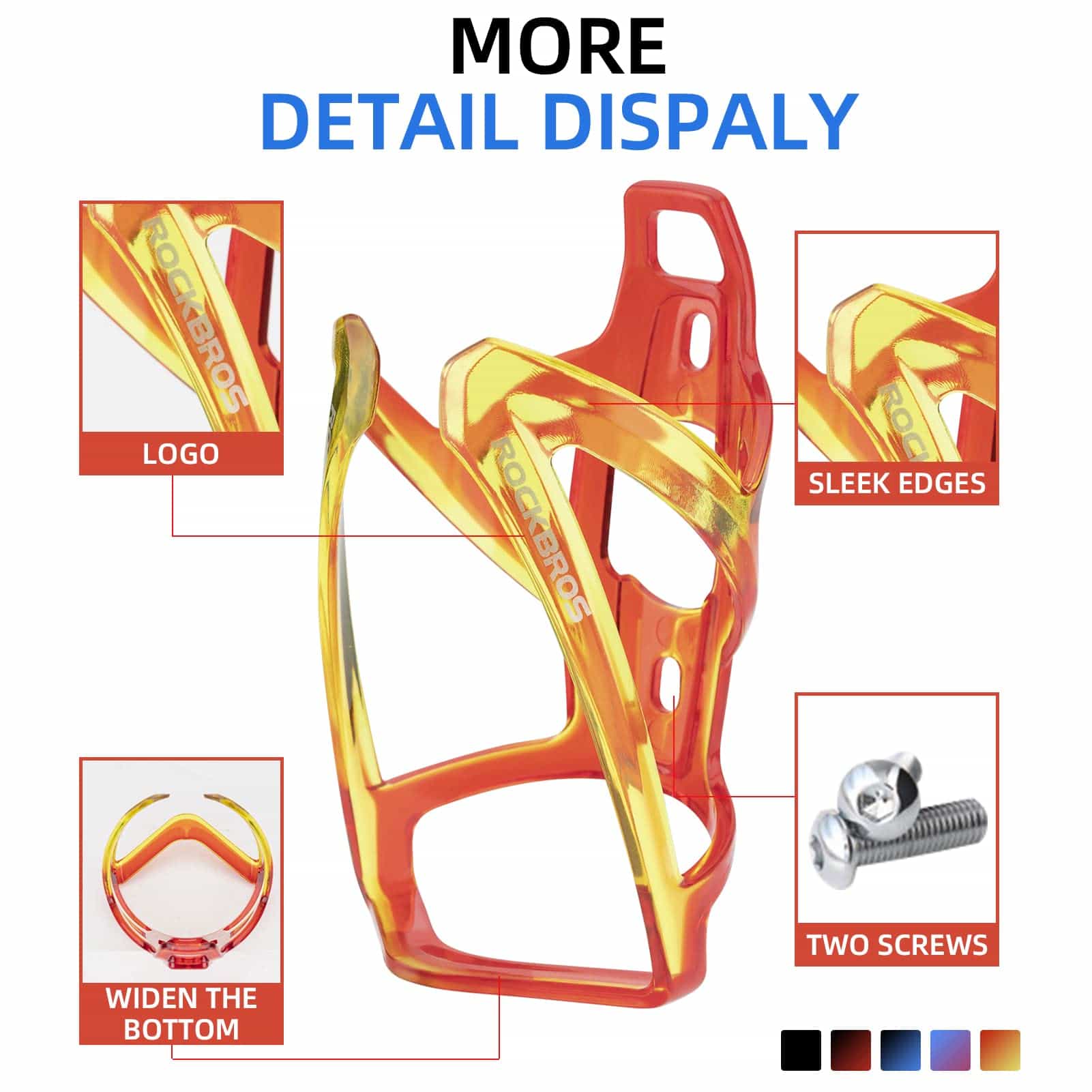 Helppo asennus: Monimutkaisia ​​työkaluja ei tarvita; pullotelineen kiinnittämiseen polkupyörään tarvitaan vain kaksi ruuvia.