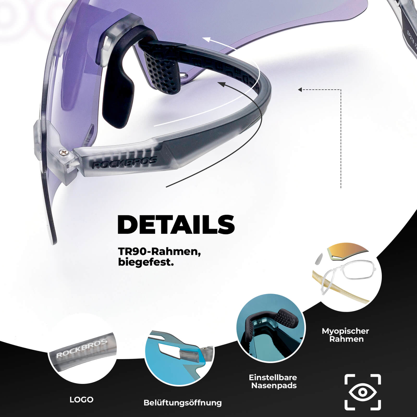 Älykäs värinvaihto sään vaihtuessa: Kuumassa auringossa linssin sävy tummenee vähitellen estäen kirkkaan valon. Kun palaat sisälle tai sään hämärtyessä, linssin sävy vaalenee automaattisesti. High Definition Hyperbolic -linssit: Hyperbolic-linssit parantavat väriä ja kontrastia terävöittäen näköä, jolloin näet enemmän yksityiskohtia. Ne terävöittävät ympäristösi yksityiskohtia ja optimoivat näkökokemuksesi, mikä antaa sinulle paremman pyöräilykokemuksen. TR90 Memory Frames: Adaptive Fit -kehykset. Erittäin joustavat ja kevyet kehykset, jotka eivät taivu, mikä vähentää pään painetta. Mukava istuvuus mahdollistaa paremman näön. Mukavat ja joustavat sangat: Tukevat sangat ovat kevyet eivätkä paina kasvojasi. Ne lievittävät nenään ja korviin kohdistuvaa painetta ja yhdessä ergonomisen muotoilun kanssa varmistavat mukavamman istuvuuden. Sisäänrakennetut likinäköisyyssuojaimet: Ratkaisee likinäköisten pyöräilytarpeen. Vinkkejä: Likinäköiset linssit eivät sisälly toimitukseen; tarvitset omat. Suositellaan likinäköisyyteen 400 asteen ja hajataitteisuuteen 200 asteen alueella. Tuotetiedot table> tbody> tr> Valmistaja ROCKBROS Merkki ROCKBROS Tuotteen paino 24 g Väri Valokromaattinen Punainen/Kulta/Violetti/Sinivalkoinen/Punakulta/Vaaleankeltainen/Violetti-vihreä/Siniharmaa Materiaali PC + TR90 Sopii Pyöräilyyn, kalastukseen, juoksuun, patikointiin jne. Pakkaus sisältää 1 x pyöräilylasit, 1 x likinäköisyyden kehykset, 1 x pehmeän pussin, 1 x puhdistusliinan, 1 x silmälasit kotelo Kategoria Unisex aikuisille ...