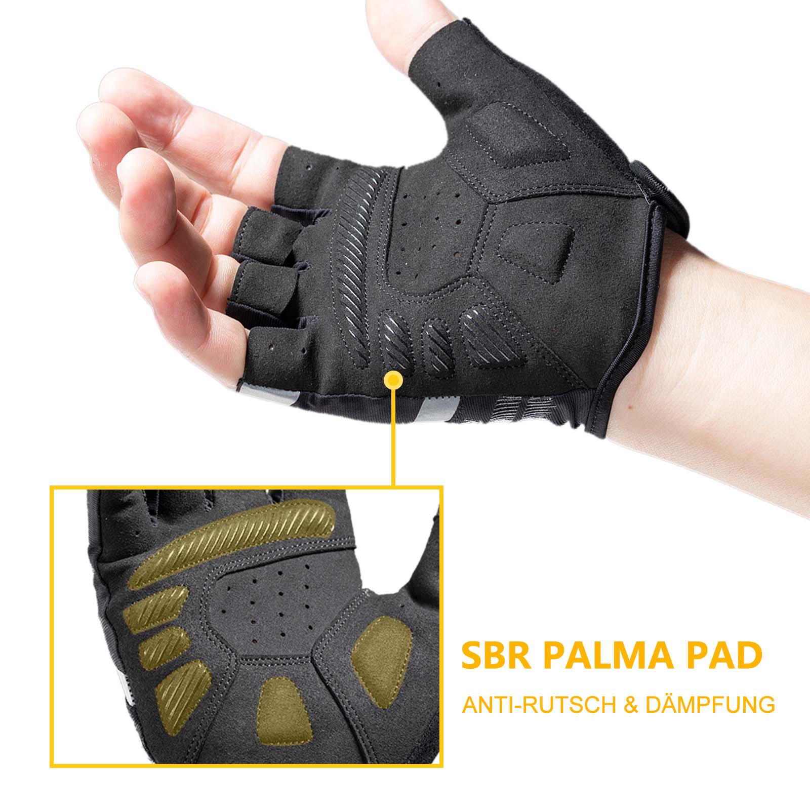 • SBR-iskunvaimennus. Käsineissä on 4 liukumatonta silikoninauhaa + 2 SBR-pehmustetta. Liukueste ja iskunvaimennus.