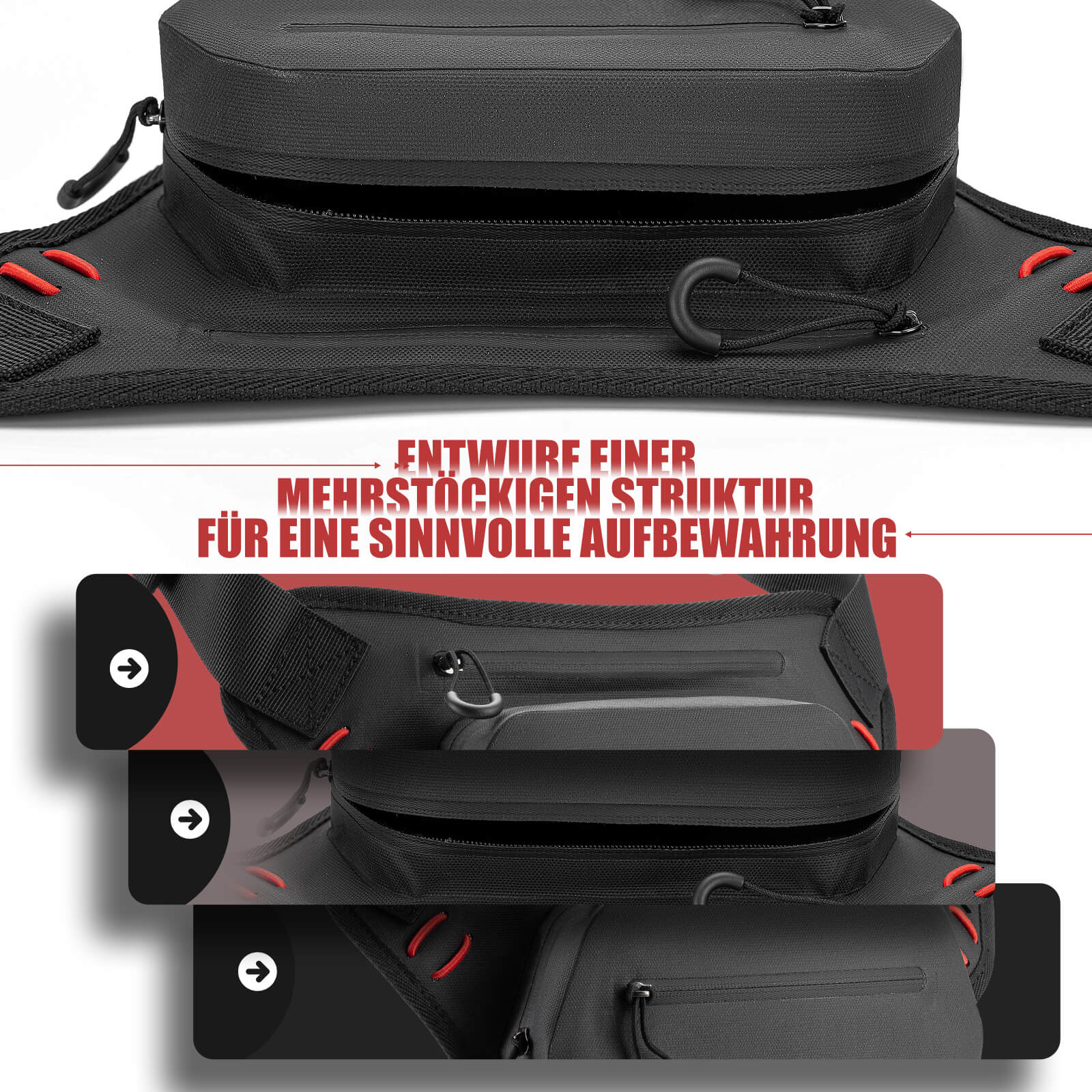 Monipuolinen käyttö: ROCKBROS-moottoripyörälaukku tarjoaa tilaa matkapuhelimelle, avaimille, käsineille ja työkaluille. Sitä voidaan käyttää jalkalaukkuna, vyölaukkuna tai olkalaukkuna, joten se täyttää kaikki tarpeesi.