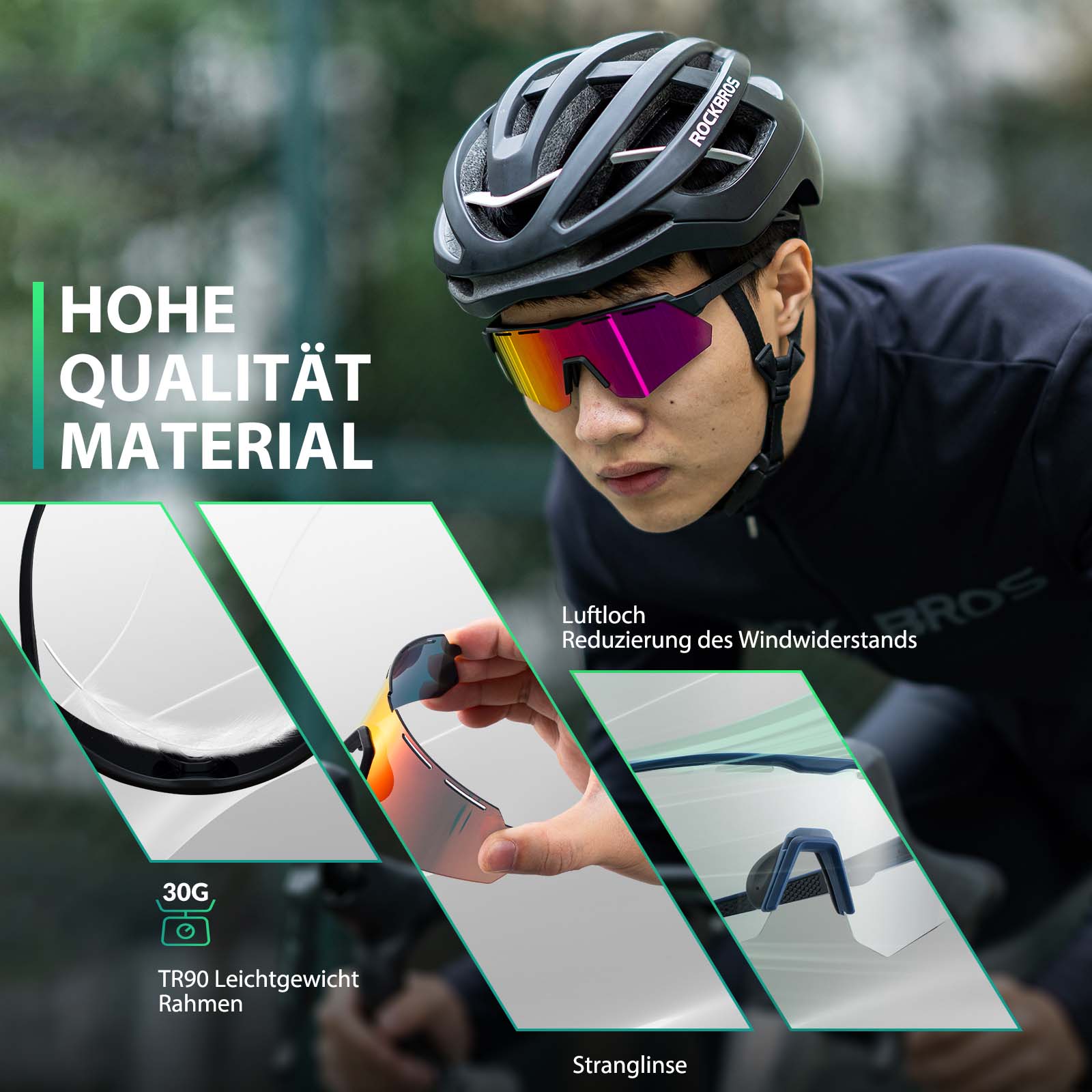 • 4 vaihdettavaa linssiä: ROCKBROS-polarisoiduissa aurinkolaseissa on neljä vaihdettavaa linssiä, jotka sopivat erilaisiin tilanteisiin. Niissä on yksi harmaa polarisoitu TAC-linssi, yksi värillinen PC-linssi, yksi keltainen PC-yönäkölinssi ja yksi kirkas PC-linssi.