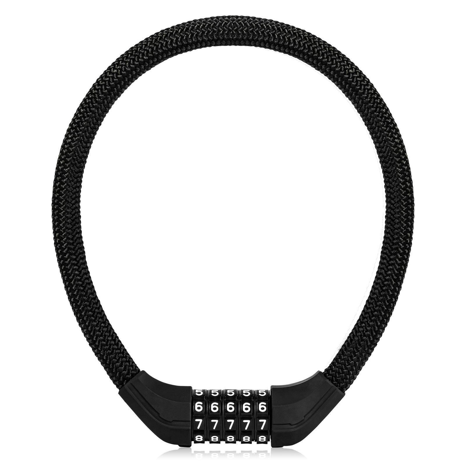 • Kestävä 5-numeroinen polkupyörän lukko: Polkupyörän lukkoketju on 13,7 mm paksu ja valmistettu erittäin lujasta seosteräksestä. Erittäin kestävä ja tukeva ketjulukko, jossa on tekstiilipäällyste.