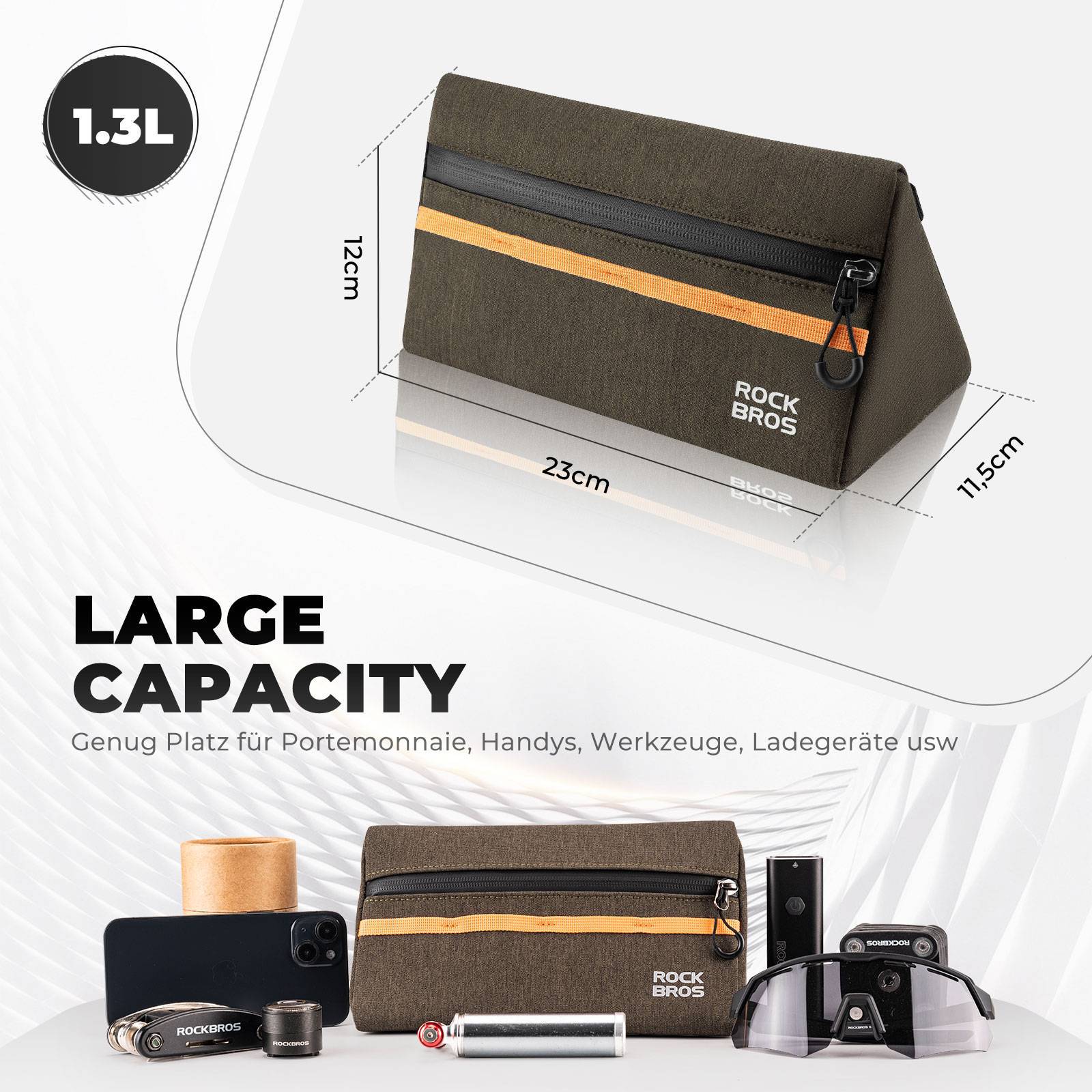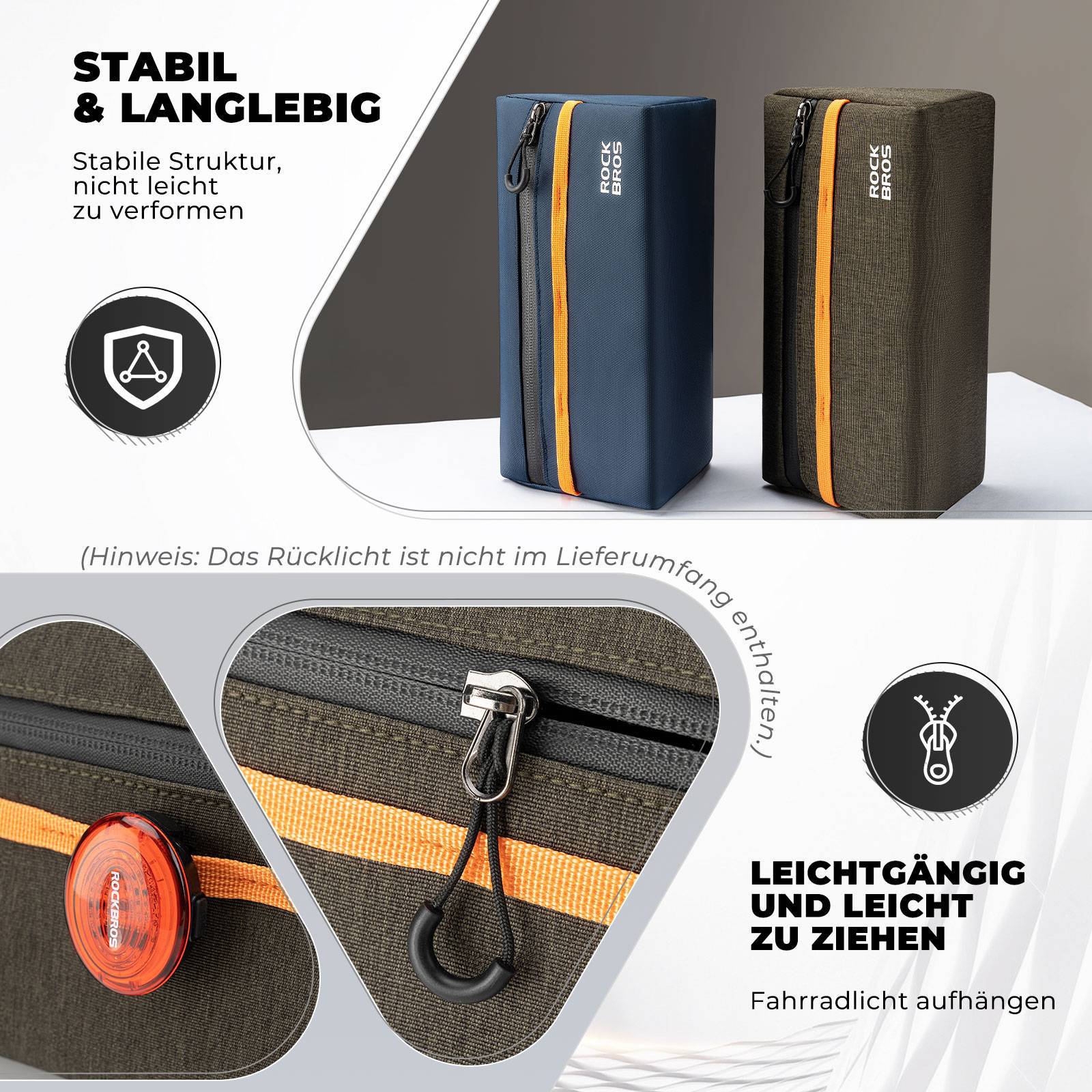 Tavaroiden suojaamiseksi etuohjaustankolaukussa on kolmionmuotoinen muotoilu. Se ei helposti väänny, edes tyhjänä, ja säilyttää muotonsa. Heijastava logo parantaa turvallisuutta yöllä ajettaessa.