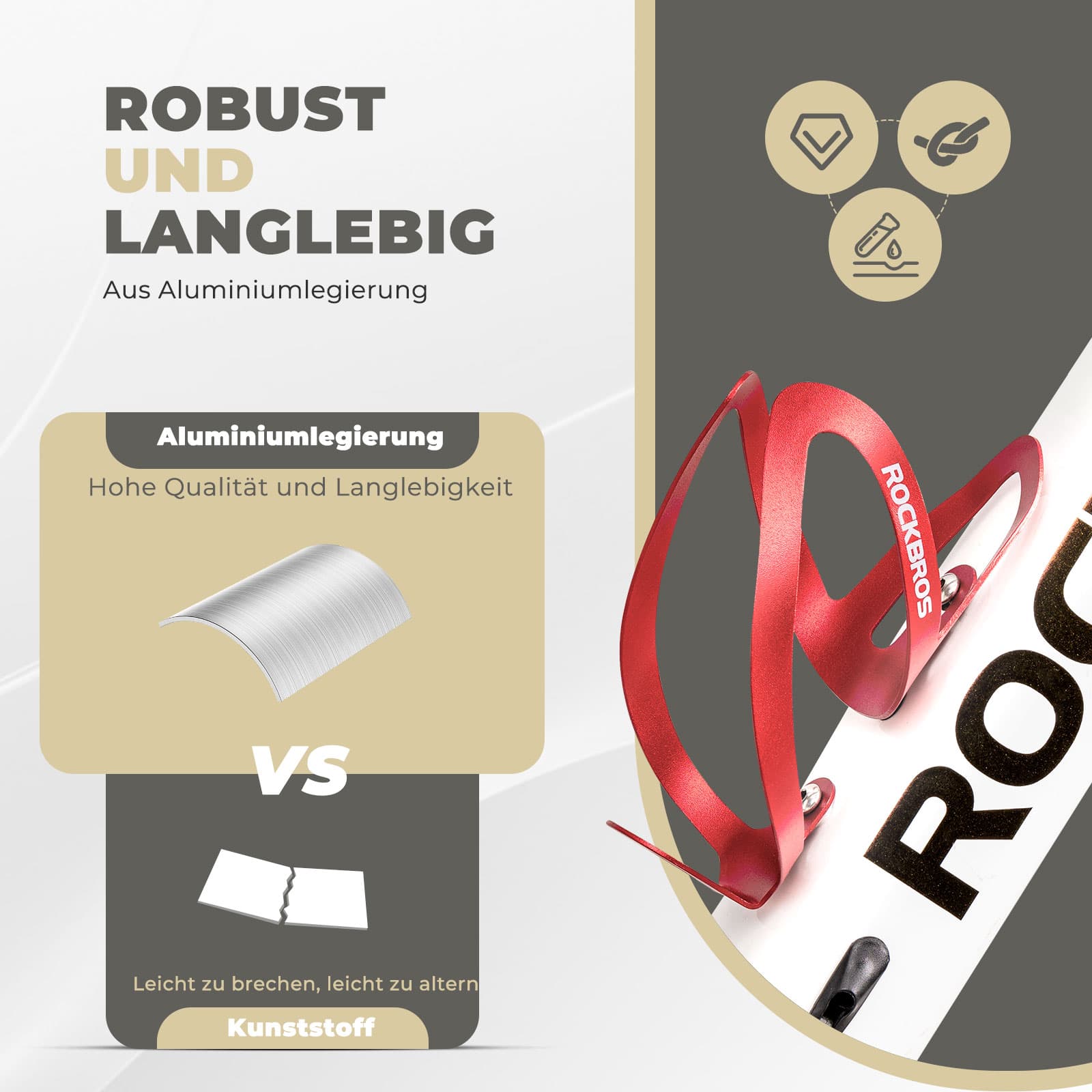 Kestävä ja kestävä: ROCKBROS-polkupyörän pulloteline on valettu yhtenä kappaleena korkealaatuisesta alumiiniseoksesta. Se on erittäin luja, korroosionkestävä eikä muodonmuutosvaikutus ole herkkä, mikä takaa pidemmän käyttöiän.