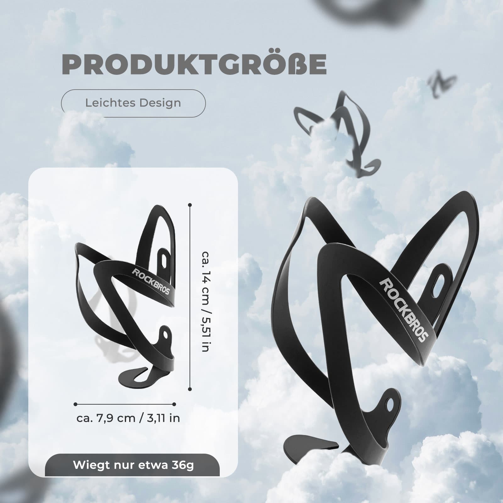 Kevyt ja käytännöllinen: Vain noin 36 g:n nettopainollaan vesipulloteline on poikkeuksellisen kevyt. Se estää tehokkaasti pyörän liiallisen painon lisäämisen, mikä tekee ajosta sujuvaa ja vaivatonta.