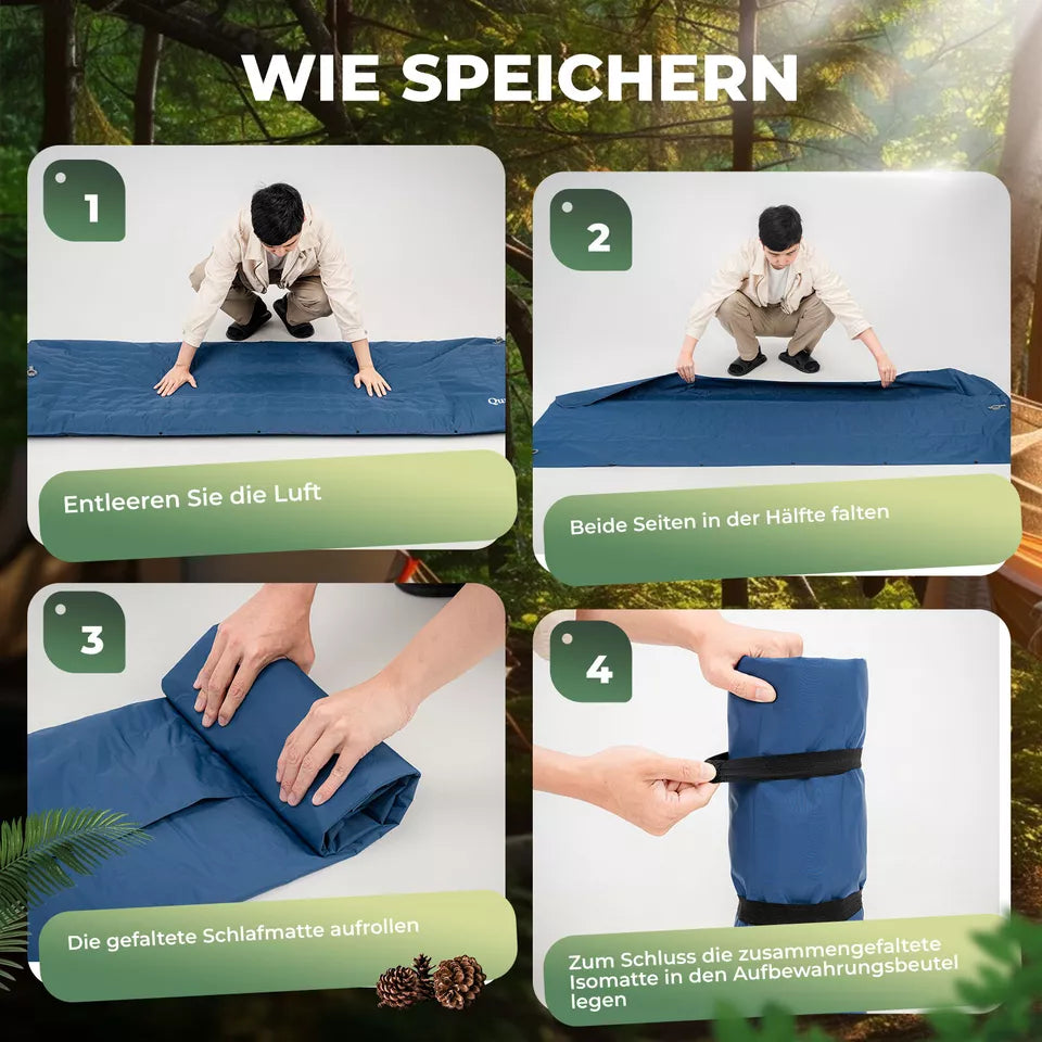 12 cm:n paksuus takaa maksimaalisen mukavuuden:Retkeilymatto on jopa 12 cm paksu ja varmistaa, että et kosketa maata käännettäessä. Se tarjoaa erinomaisen paineen jakautumisen, tukee koko kehon painoa tasaisesti ja vähentää kaatumisen aiheuttamaa melua.