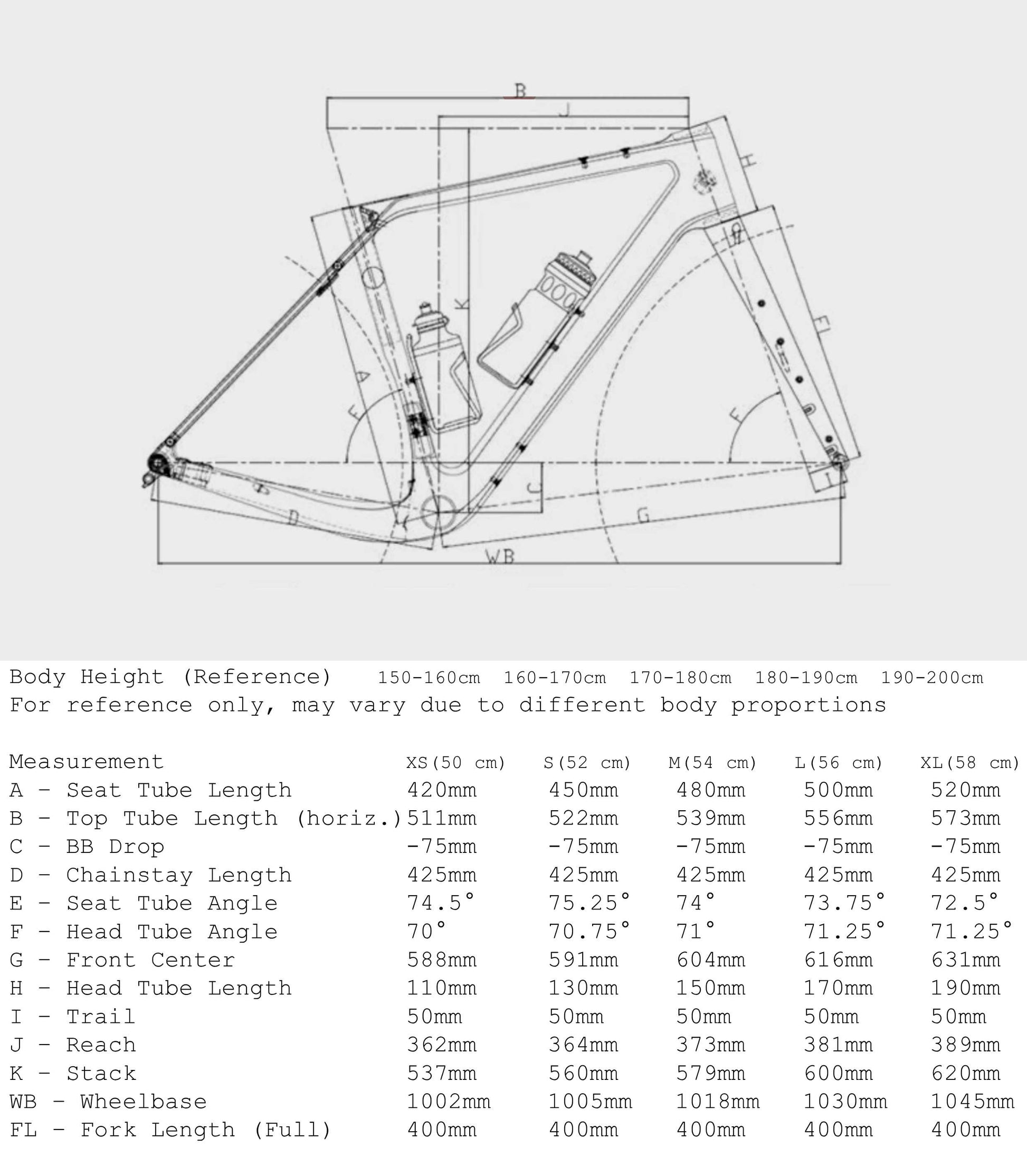 RINOS Sandman4.0 GRX400 Gravelbike on saatavana viidessä eri runkokokoisessa - 50 cm, 52 cm, 54 cm, 56 cm ja 58 cm - ja se sopii 155 cm ja yli 190 cm pitkille pyöräilijöille. Paino vain 9,8 kg tekee RINOS Sandman4.0 GRX400 Gravel-pyörästä kevyen pitkiä matkoja varten. Pyörä toimitetaan korkealaatuisella satulalla, joka takaa mukavan ajokokemuksen.
