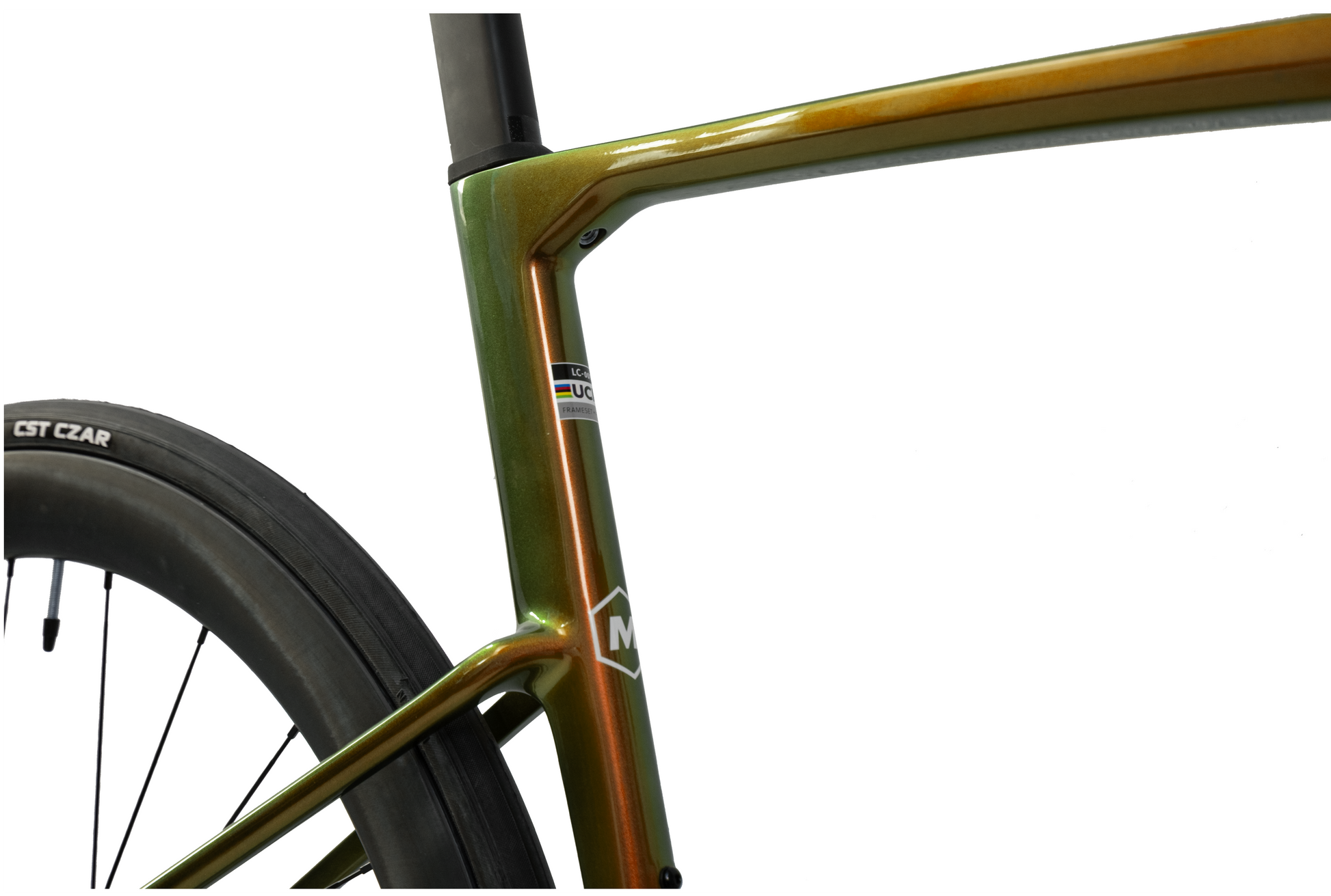 • Täyshiilikuituinen runko ja etuhaarukka: erittäin kevyt Toray T800 hiilikuiturakenne.