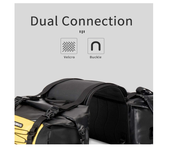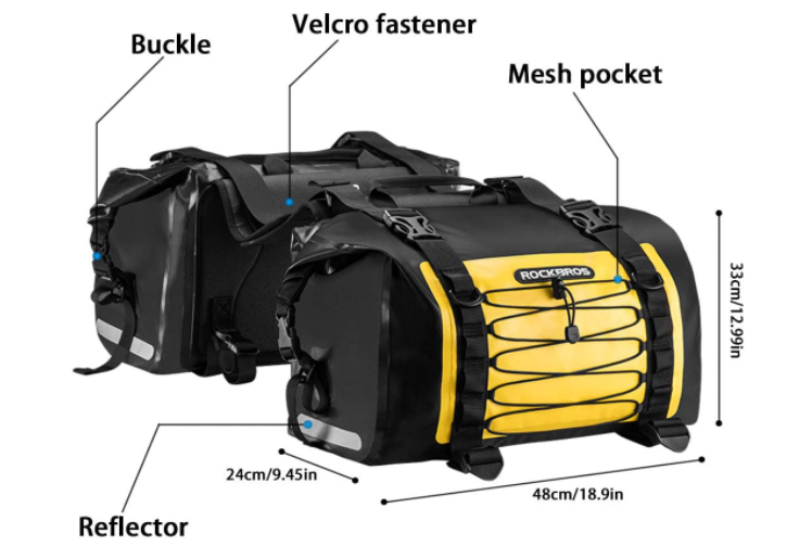 SUURI KAPASITEETTI: ROCKBROS-satulalaukkujen tilavuus on 2*31L ja kantavuus 50-60KG. Tässä moottoripyörän satulalaukussa on kaksi sivutaskua, ja se on riittävän suuri välttämättömien tavaroiden säilyttämiseen. Kuten kypärät, vaatteet, korjaustyökalut, vesipullo, ruoka jne.