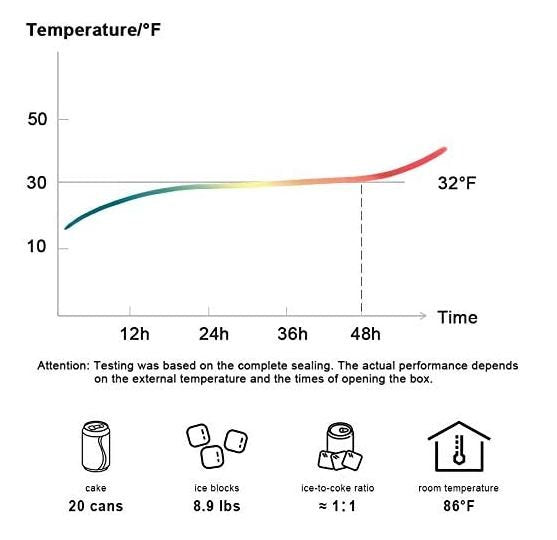 ERINOMAINEN JÄÄHDYTYSTEHO: Pitää kylmänä jopa 48 tuntia. Testauksen jälkeen 30 asteen sisätiloissa: lämpötila 48 tunnin jälkeen oli -3? 3:een? kohonnut. Valmistettu paksunnetusta eristemateriaalista 840D nylon ulkopuolelta ja 420D polyesteri sisältä pitämään ruuat tai juomat viileinä erityisen pitkään. Huomio: Älä laita siihen lämmintä ruokaa.