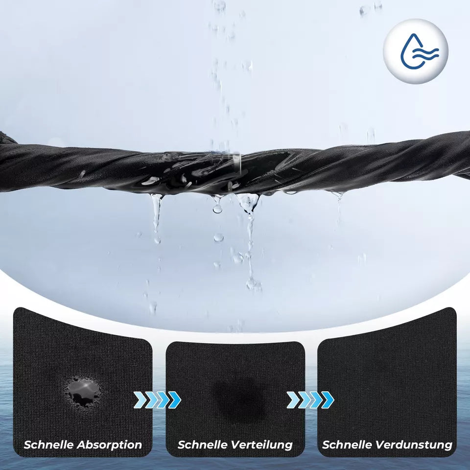 Nopeasti kuivuva ja kosteutta siirtävä:Coolmax-kangas siirtää kosteutta tehokkaasti ja nopeuttaa hien haihtumista, jotta pysyt kuivana ja mukavana.