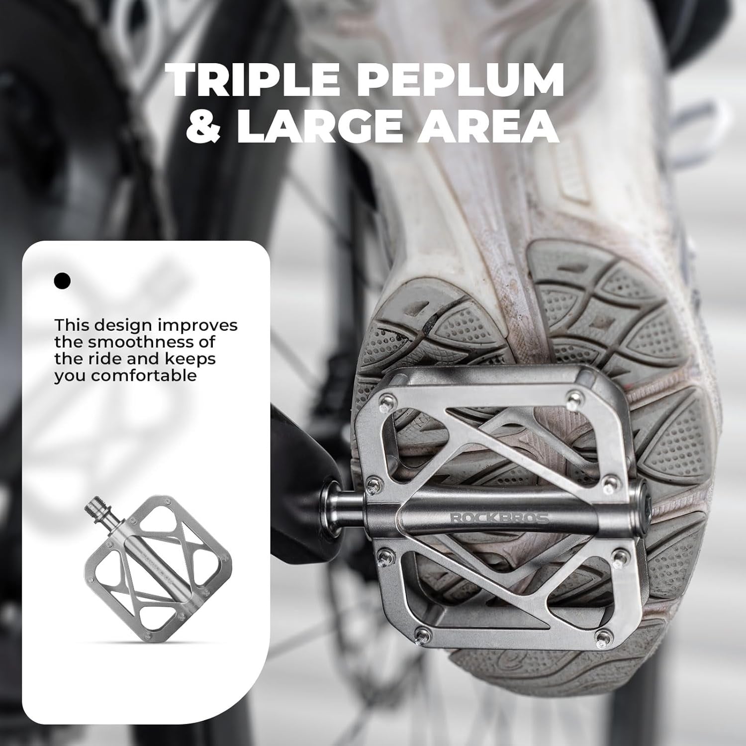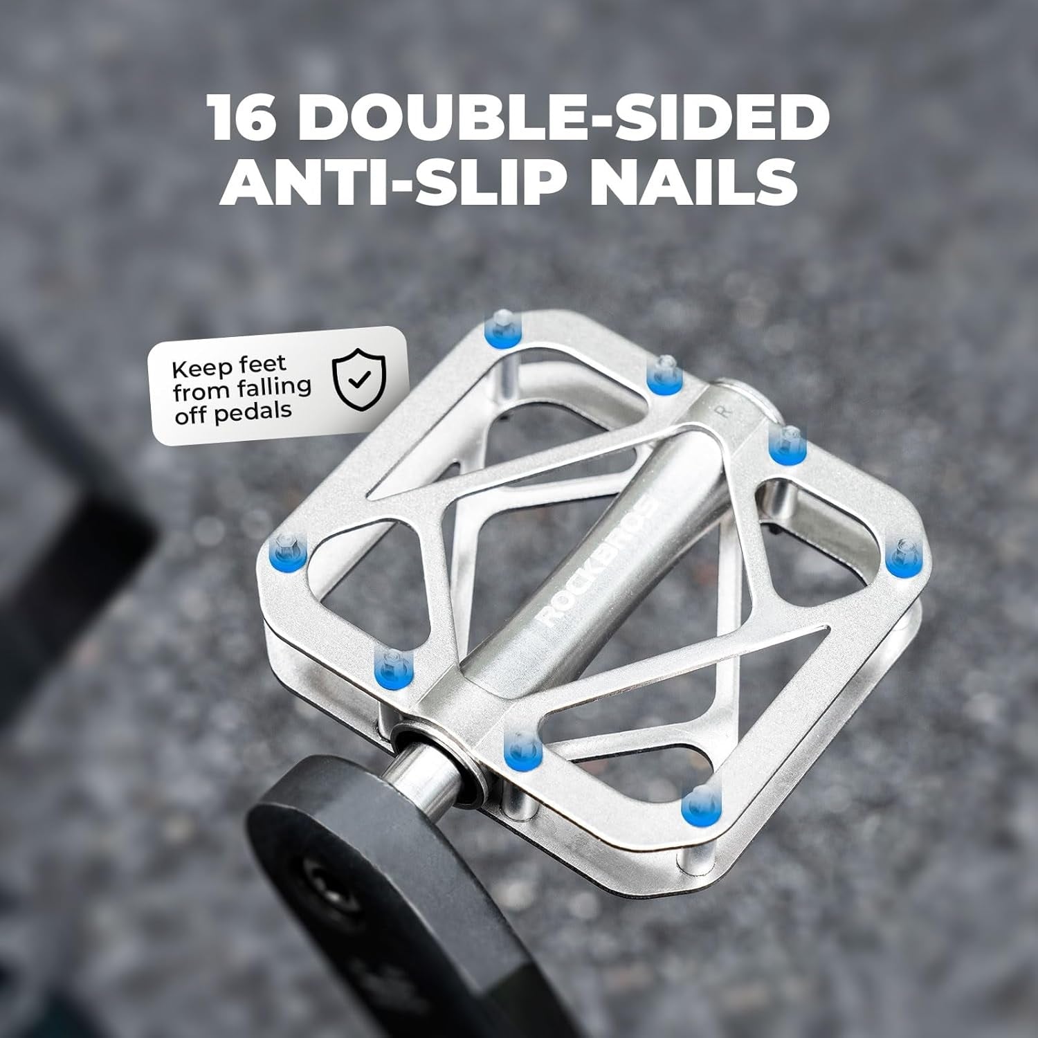 Erittäin suuri ja vakaa alusta: 8,8 x 8,5 cm:n poljinalusta, joka on vahvistettu 8 ruostumattomasta teräksestä valmistettujen ruuvien avulla, tarjoaa maksimaalisen vakauden ja pidon, vähentää luistoa ja varmistaa turvallisen ajon.