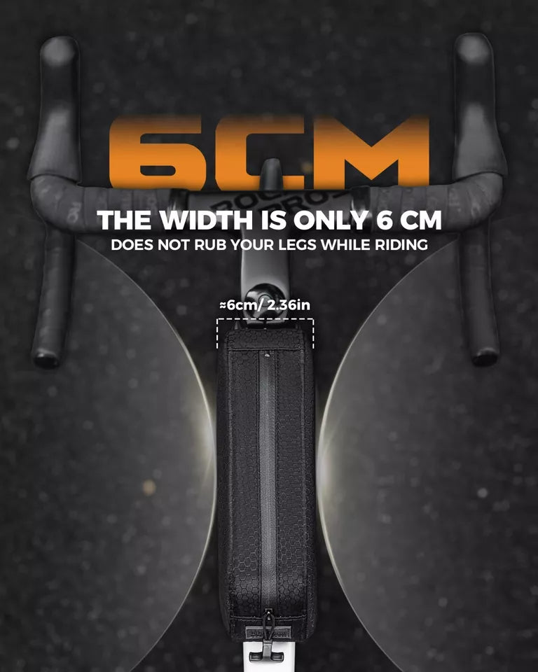 • Järkevä muotoilu: Polkupyörän päällä oleva putkilaukku on muotoiltu virtaviivaiseksi, joka sopii rungon muotoon ja käyttää tilaa järkevästi lisäämättä ajotaakkaa. 6 cm:n kapea reunarakenne voi taitavasti välttää jalkojen liikealueen, vähentää pussin hankausta jalkoihin ajon aikana ja varmistaa pitkän matkan ajon mukavuuden.