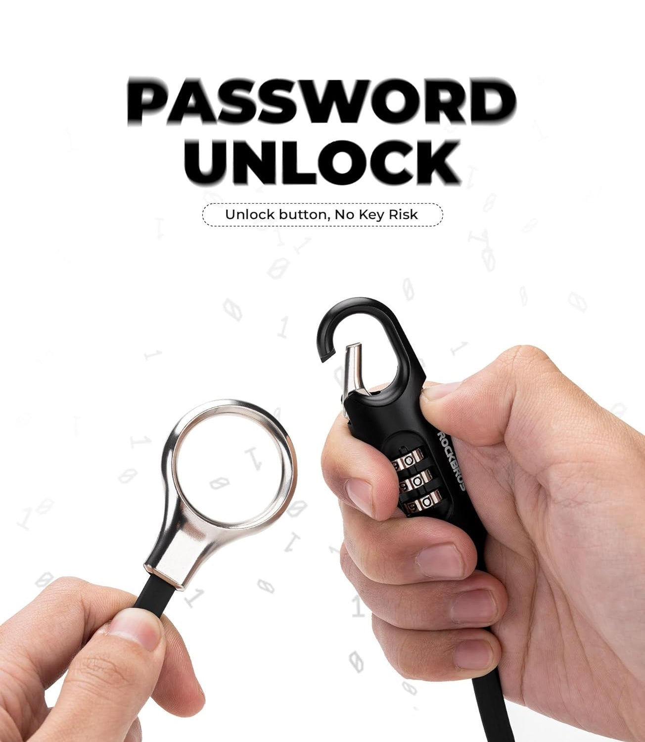 ROCKBROS polkupyörän lukko vaijerilukko 150cm numerokoodilla varkaudenesto skootterille lastenrattaat punainen/musta