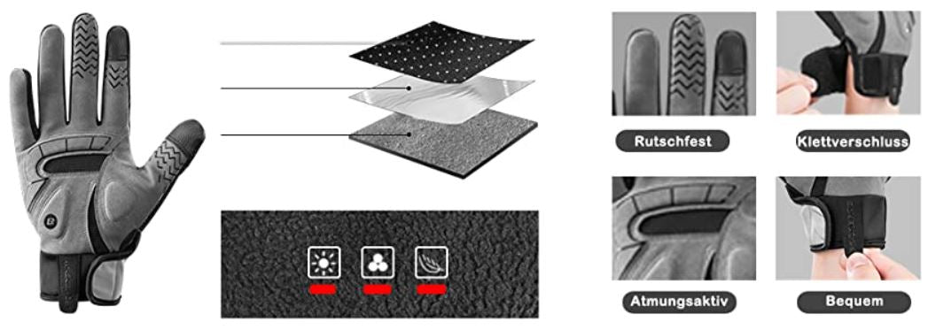 Lämmin ja hengittävä: ROCKBROS-hanskojen sisäpuoli on vuorattu fleecekankaalla, joka pitää kätesi lämpiminä talvella. Käsien pohjassa on hengittävää materiaalia, joka pitää kätesi kuivina pyöräillessä tai harjoitellessa.