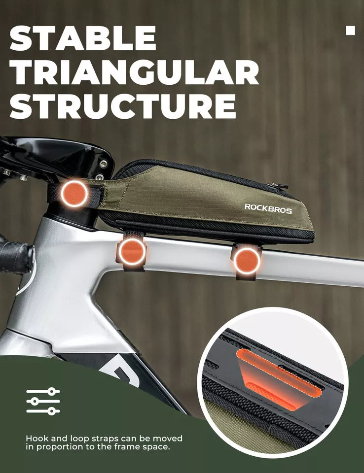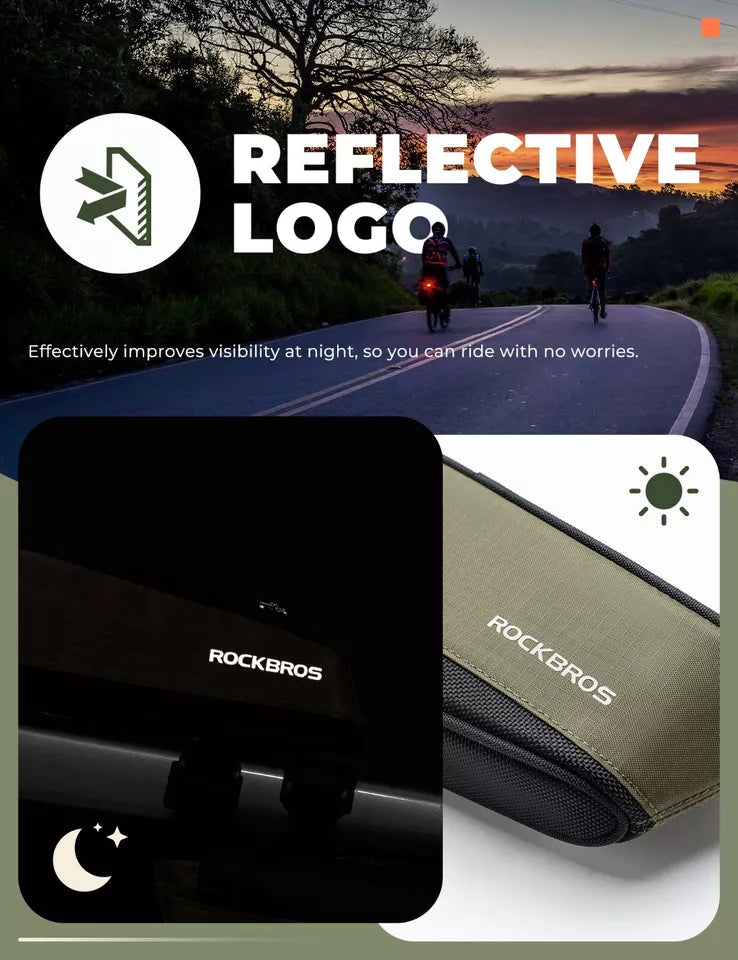 Sisäiset verkkotaskut:ROCKBROS-laukku on varustettu sisäisillä verkkotaskuilla, joiden avulla voit lajitella ja järjestää tavarasi siististi.