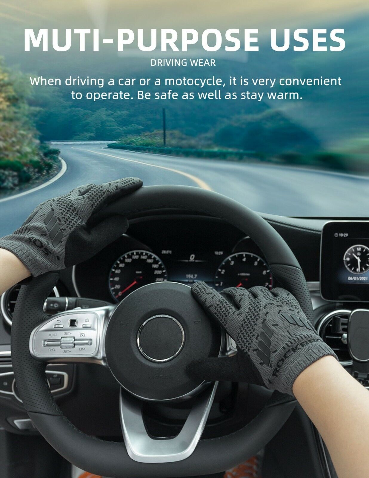 Kosketusnäyttö: Juoksuhanskassa käytetään johtavaa kangasta etusormessa ja peukalossa. Herkkä kosketusnäyttö auttaa vastaanottamaan puheluita ja käyttämään navigointia ajon aikana.