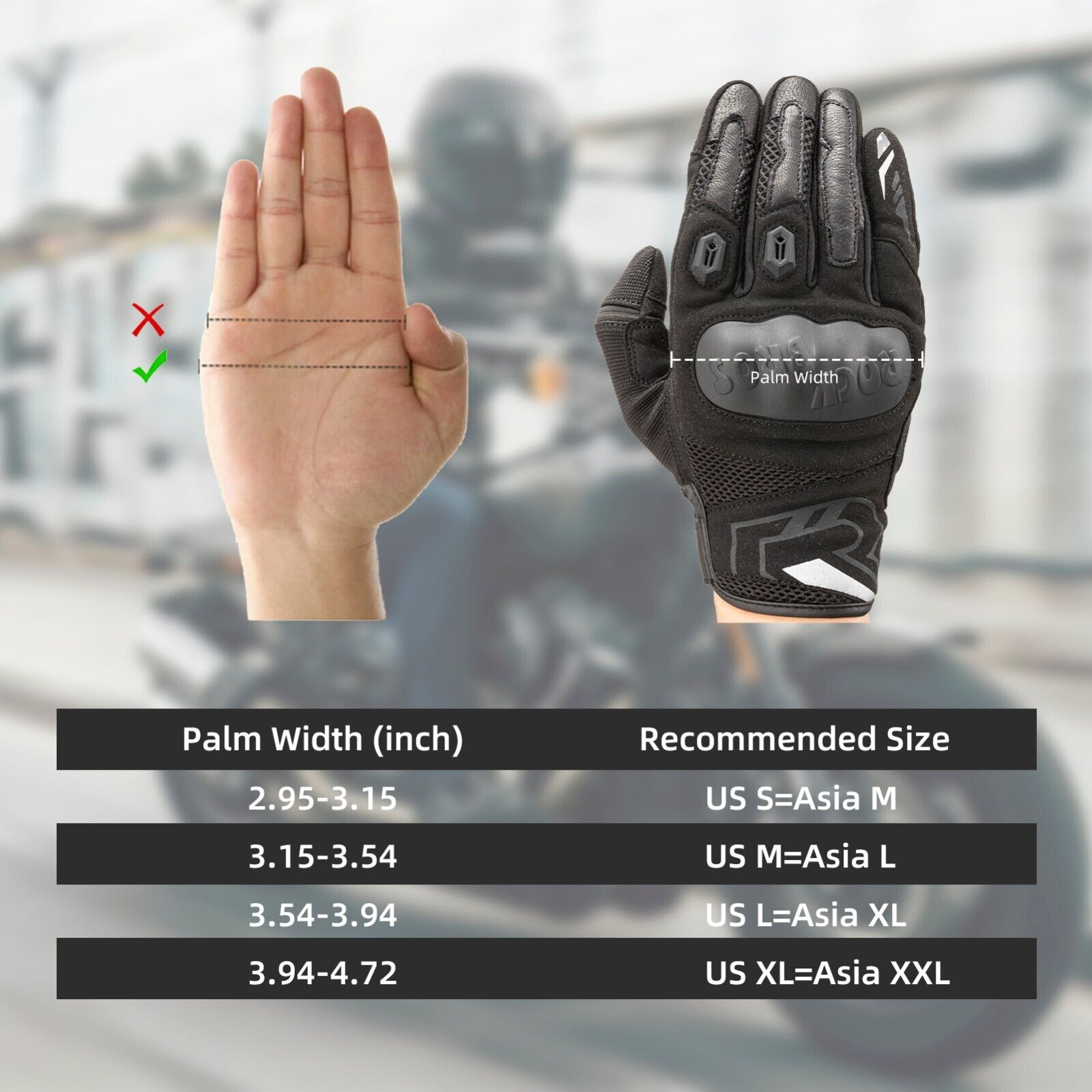 Täysi suoja: Ammattimaisella ja parannetulla rystys- ja kämmensuojauksella varustetut moottoripyörähanskat sisältävät TPU-antikollisio-nivelmuotoilun, ovat kulutusta kestävät ja iskunkestävät. Täyspitkä sormimuotoilu tarjoaa käsillesi parhaan suojan.